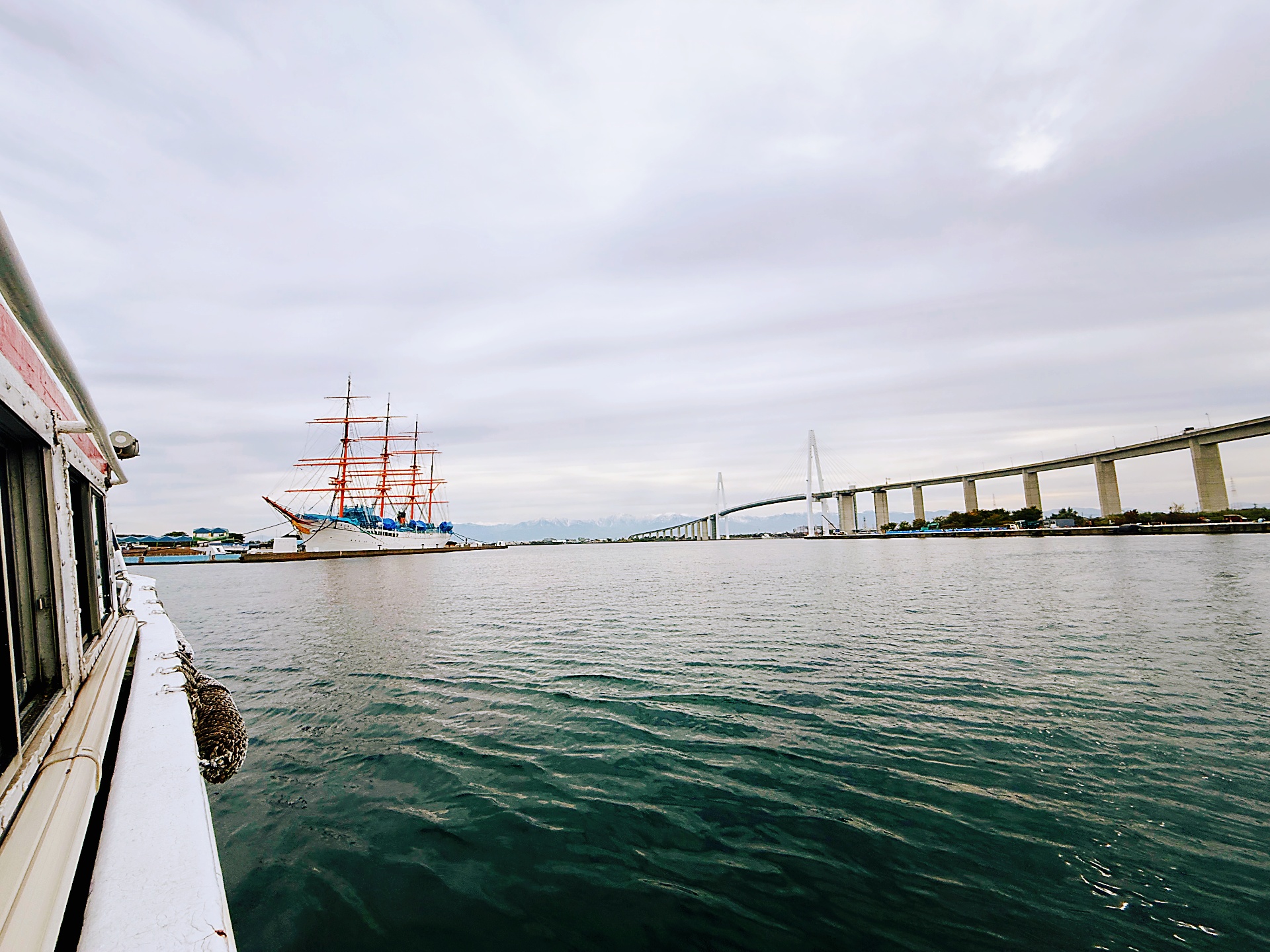 可近距离观赏大型练习帆船“海王丸”、新凑大桥,天气晴朗时还能远眺立山连峰的壮丽景色。沿途可欣赏港口与城镇风貌、船只往来以及当地渔业的日常景象。